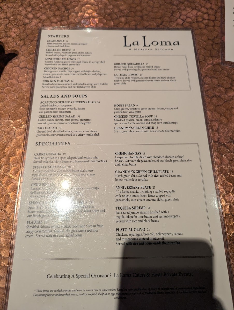 La Loma Menu